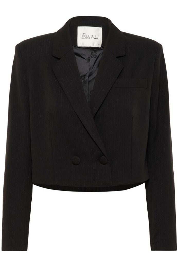 Deze korte zwarte blazer van My Essential Wardrobe is een echte musthave voor het feestseizoen. De subtiele glitter in de stof geeft ‘m een chique en feestelijke touch, zonder dat het too much wordt.