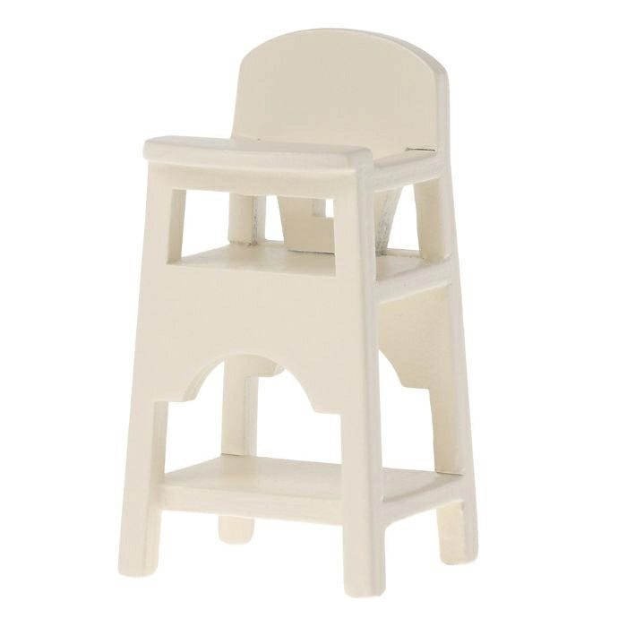 Een prachtig ontworpen kinderstoel waarin de kleinste Maileg baby’s gezellig mee aan tafel kunnen zitten. De stoel is gemaakt van hout en heeft een tijdloze witte afwerking die mooi past bij de andere Maileg meubeltjes.