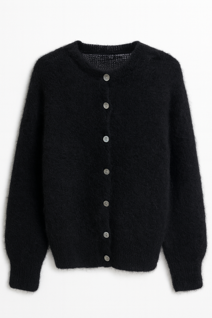 Hoe leuk is dit vest? Hij bestaat uit 80% mohair, 18% polyamide en 2% elastaan.
